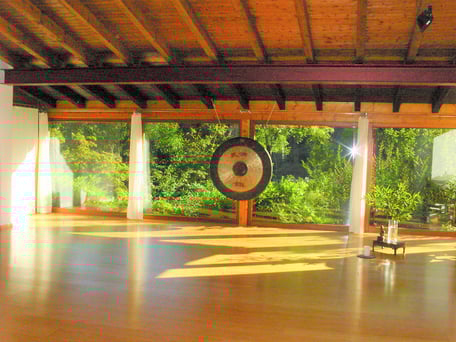 Heller Seminarraum mit Blick ins Grüne.